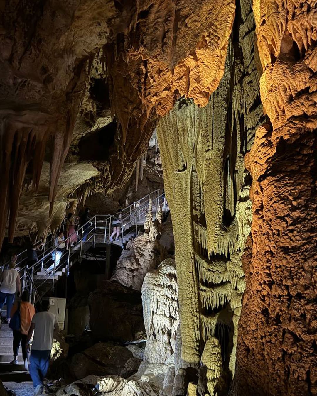 Далее вас ждет экскурсия от административного центра в группе (попасть внутрь без гида от администрации пещеры нельзя). Пеший маршрут 1,4 км, на нем посещается 6 залов, где делают остановки на рассказы и дают время для фото. Продолжительность прогулки 1-1.15 ч.