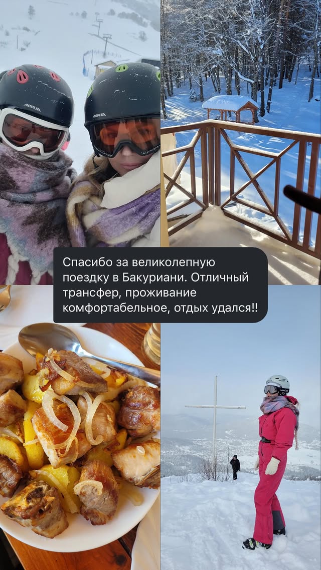 Спасибо за великолепную поездку в Бакуриани. Отличный трансфер, проживание комфортабельное, отдых удался!!